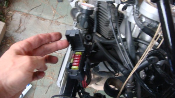 Sulla sinistra si vede l’ECM della moto (centralina elettronica)