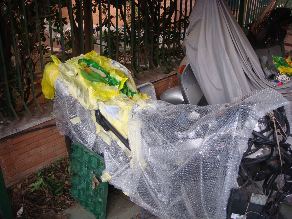 Ho cosi individuato il punto di copertura della carena posteriore e quindi il punto fino a dove sarebbe stato visibile il lavoro a sella chiusa. Inoltre ho cercato di trovare il punto dove lo stacco della vecchia e nuova vernice non si fosse visto anche a sella aperta. Credo di esserci riusciti. Ho foderato la moto in un modo maniacale al fine di evitare verniciature in punti non voluti….