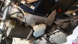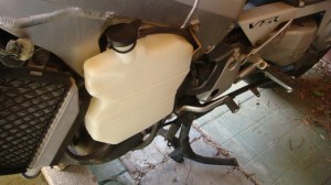 La vaschetta del liquido presentava della melma all’interno da fare schifo. Inoltre aveva formato una patina che non permetteva il controllo periodico del livello di liquido presente. Deciso cosi di scollegarla dal circuito di raffreddamento e procedere ad una pulizia adeguata.