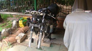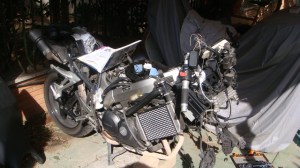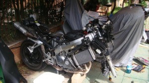 Gia cosi la moto sembra parecchio nuda…..notare il fido manuale di officina della Haynes sempre affianco…..se non ci fosse lui….sai i danni!