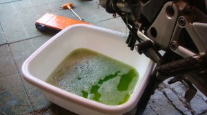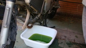 Per prima cosa, rimuovo il bullone di spurgo della pompa di raffreddamento e provvedo allo spurgo totale della robaccia che c’era dentro….che schifo….