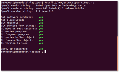 Checking the ubuntu unity support utility the “Unity 3D supported” was reported as No and the overall system performances were very bad.